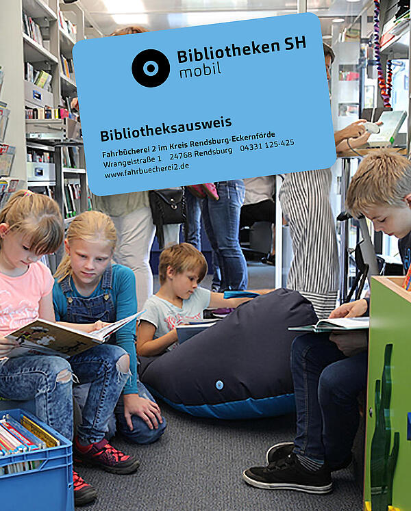 Die 12 ländlichen Fahrbibliotheken in Schleswig-Holstein erhalten im Rahmen des neuen Markenauftritts mit Bibliotheken SH mobil eine eigene Untermarke, die sich von der Hauptmarke ableitet: Beim Signet für Bibliotheken SH mobil wird aus den Kreisen ein Rad, das für die Fahrbibliotheken steht.